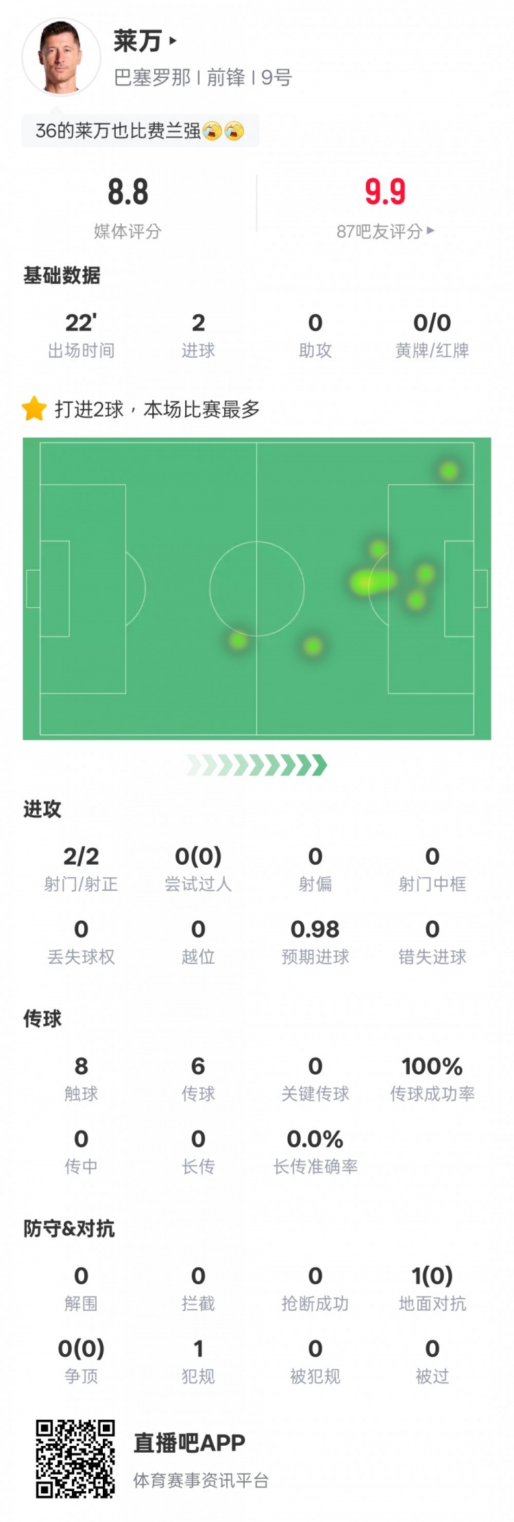 Trong vòng thứ 4 của 2025-26 La Liga, Barcelona 6-0 Valencia, Lewandon đã chơi trong 22 phút trên băng ghế dự bị, ghi được 2 bàn thắng, với 8,8 điểm.